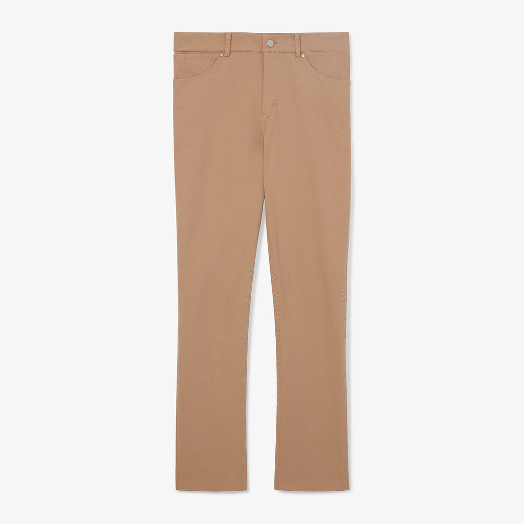 These high-waisted, better-than-denim straight-leg jeans are crafted from a machine-washable Turkish two-way stretch cotton that provides comfort, ease, and excellent recovery (no baggy knees here!). They feature a concealed snap in the hem that allows you to adjust the length, a classic fly-front zipper, and back pockets.