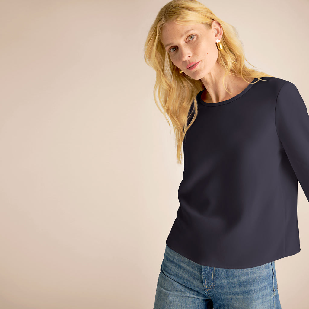 The Jules is like your favorite pullover in blouse form. Made from our Everyday Crepe fabric, this relaxed, crewneck style is ideal for travel and won’t wrinkle easily, so you can pop it on and go.