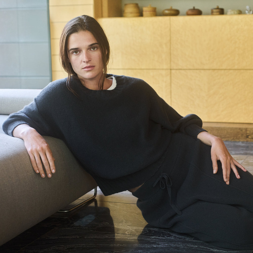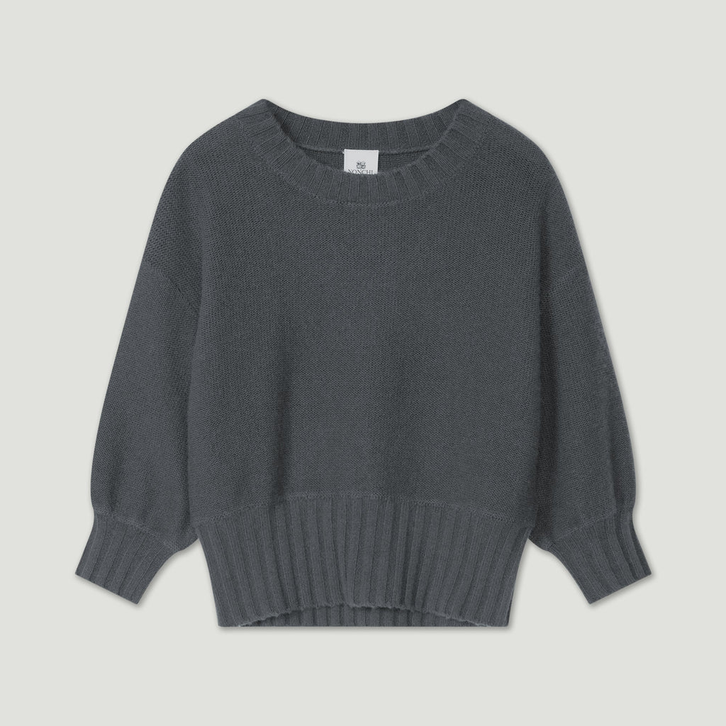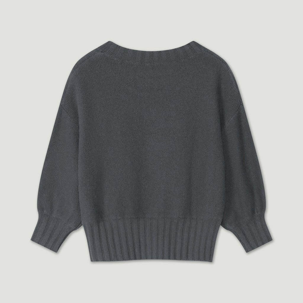 Alva, named for its northern meaning, elf, carries a sense of quiet lightness and softness. Knitted in Dusk Grey, with slim sleeves that fall just above the wrist and a gently shaped collar.