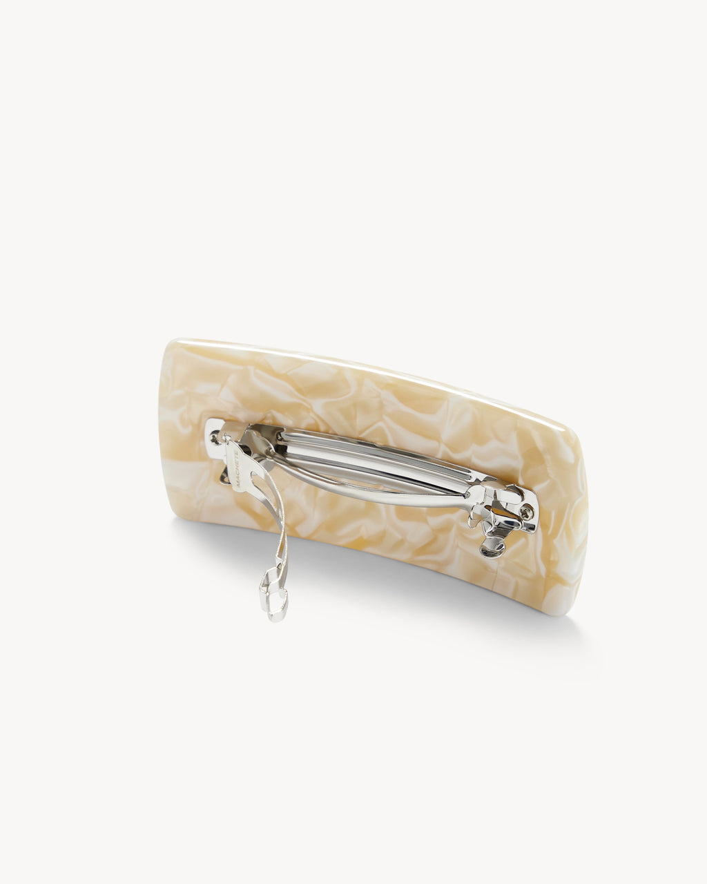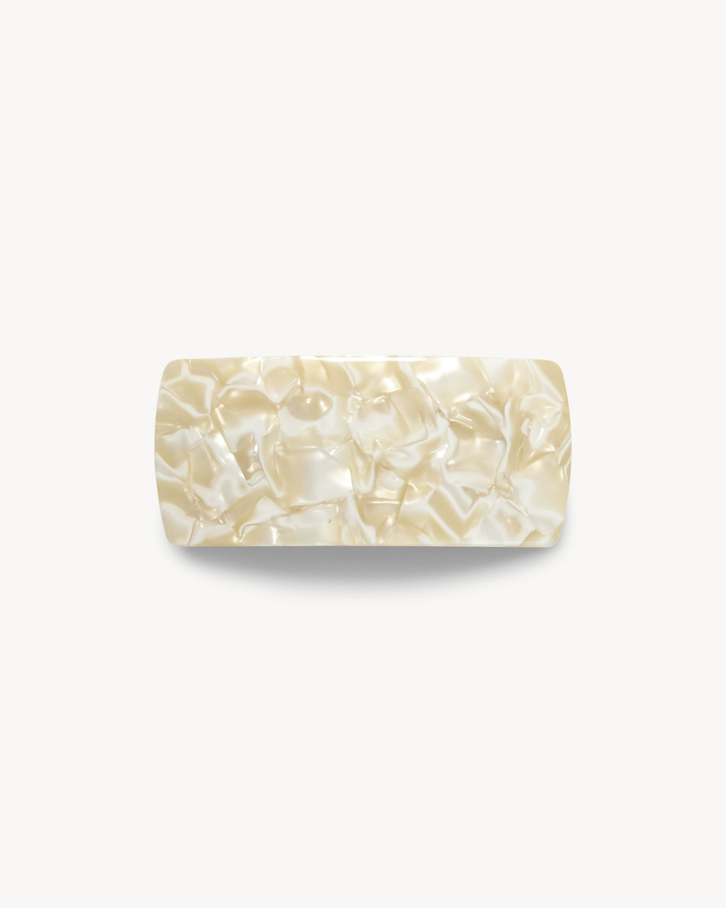 Handcrafted Italian acetate barrette with a reinforced spring clasp. Securely holds medium-to-large volumes of hair of all types and textures.