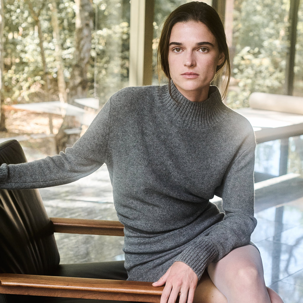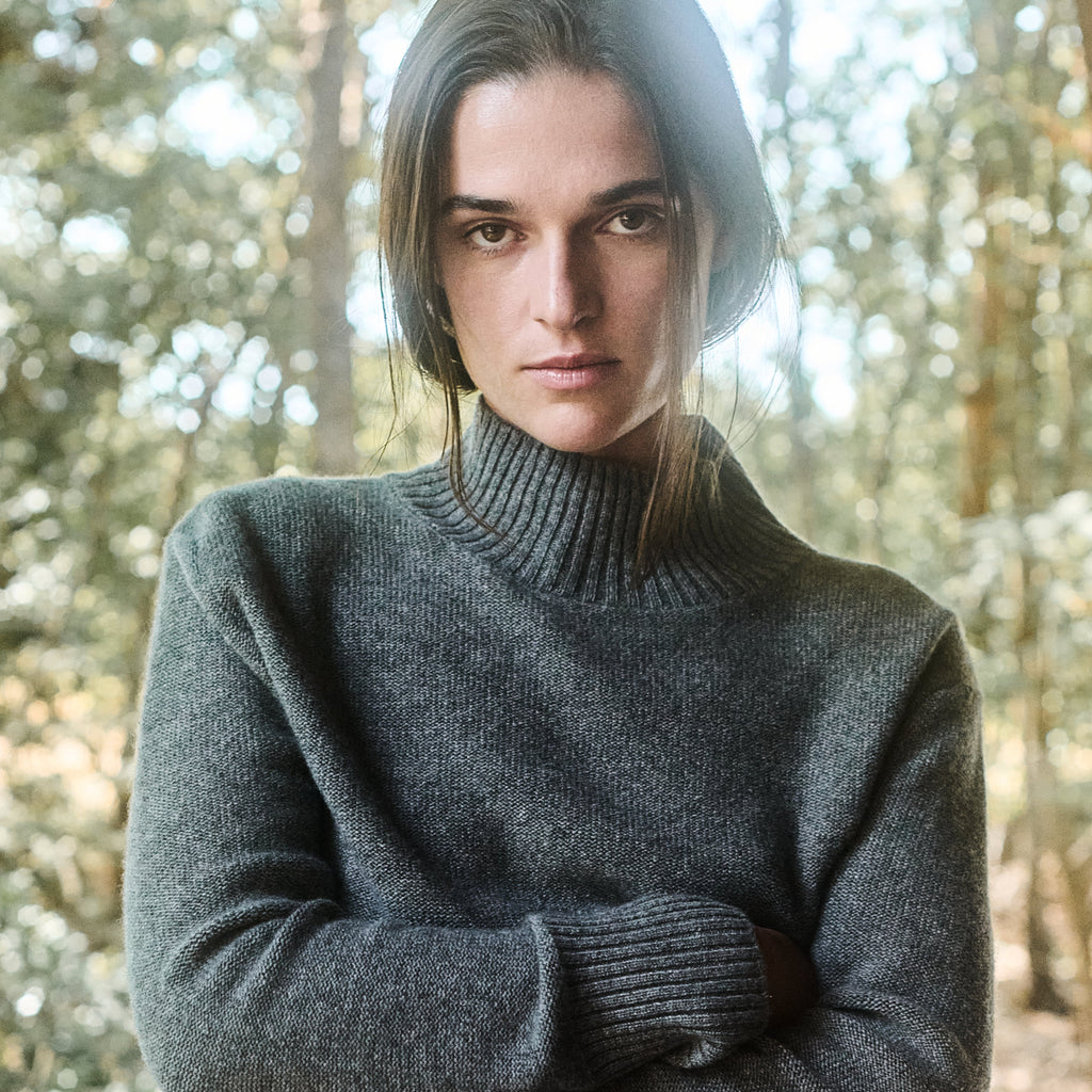 A turtleneck in soft cashmere. The high collar offers quiet shelter, like a northern home in winter, still, warm, and filled with light. The Oat tone reflects the gentle warmth of pale morning light filtering through frost-covered windows.