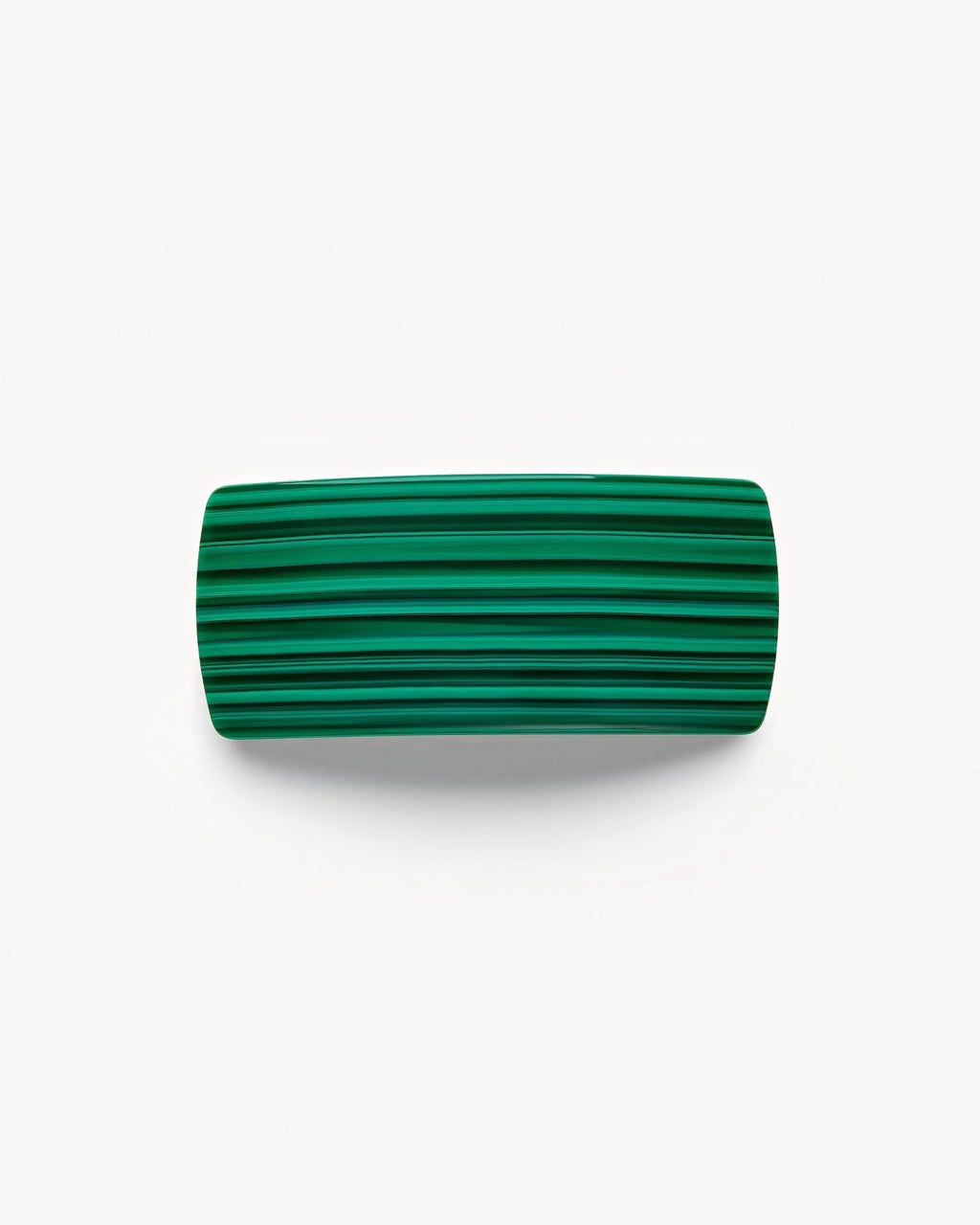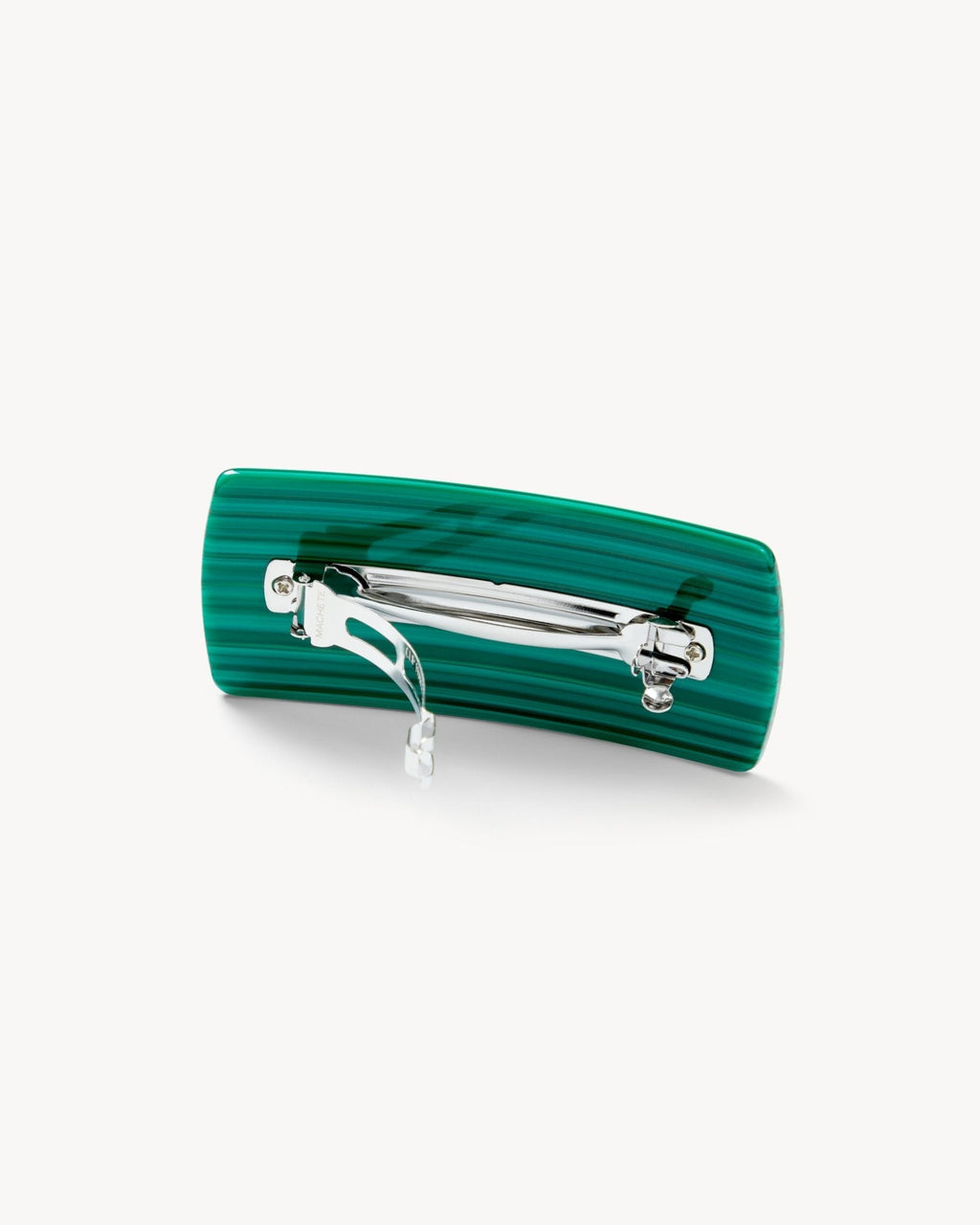 Handcrafted Italian acetate barrette with a reinforced spring clasp. Securely holds medium-to-large volumes of hair of all types and textures.