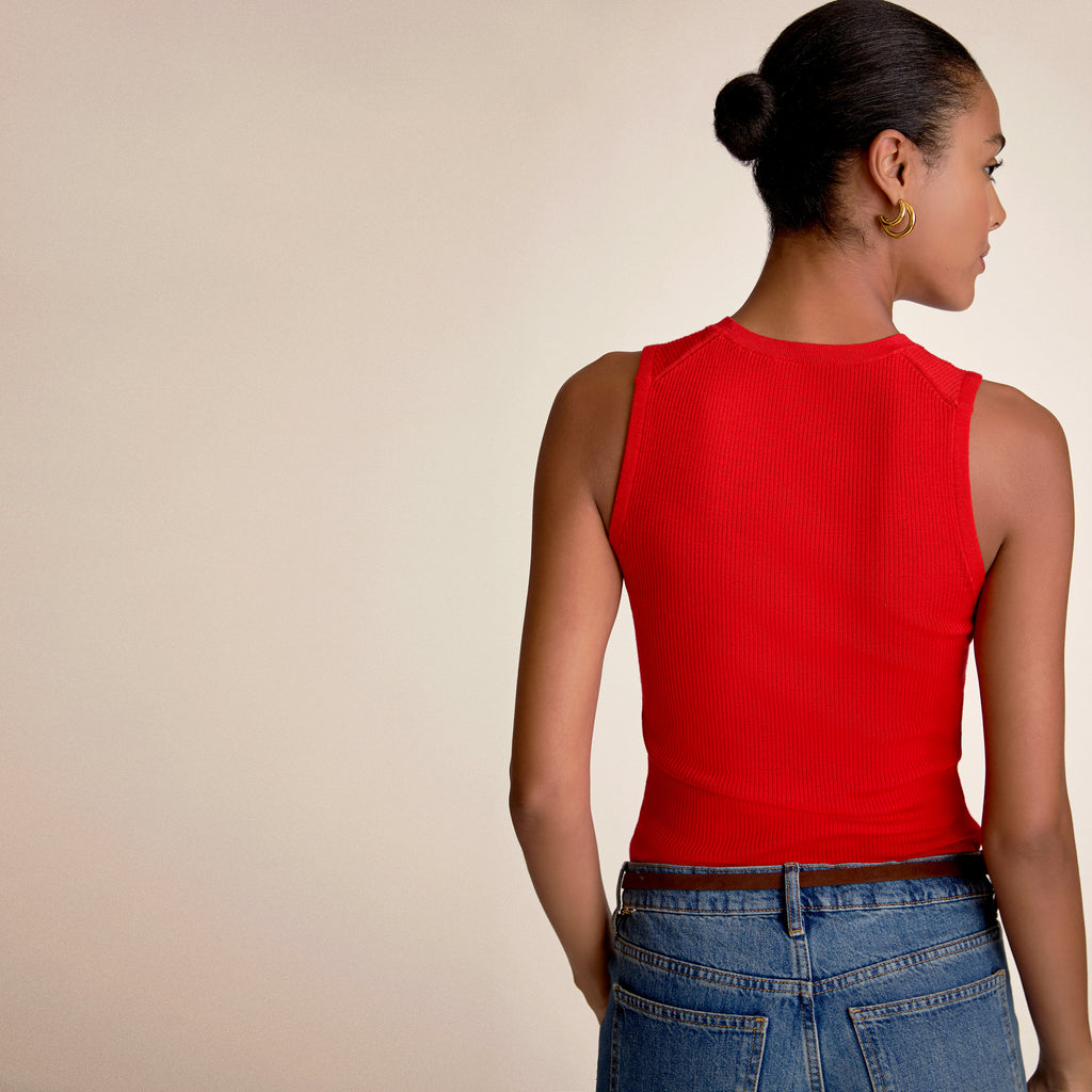 Spun from 100% Merino wool, the Trina top is a fitted shell with a finely ribbed texture, making it an ideal base for cool-weather layering. Style it as an underpinning along with your favorite blazer, then wear it solo come spring.