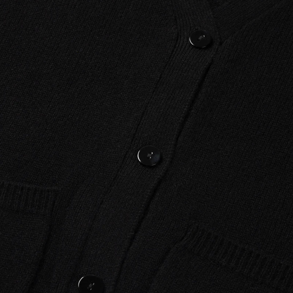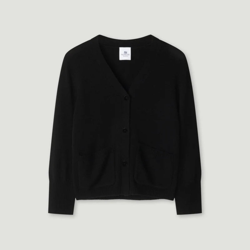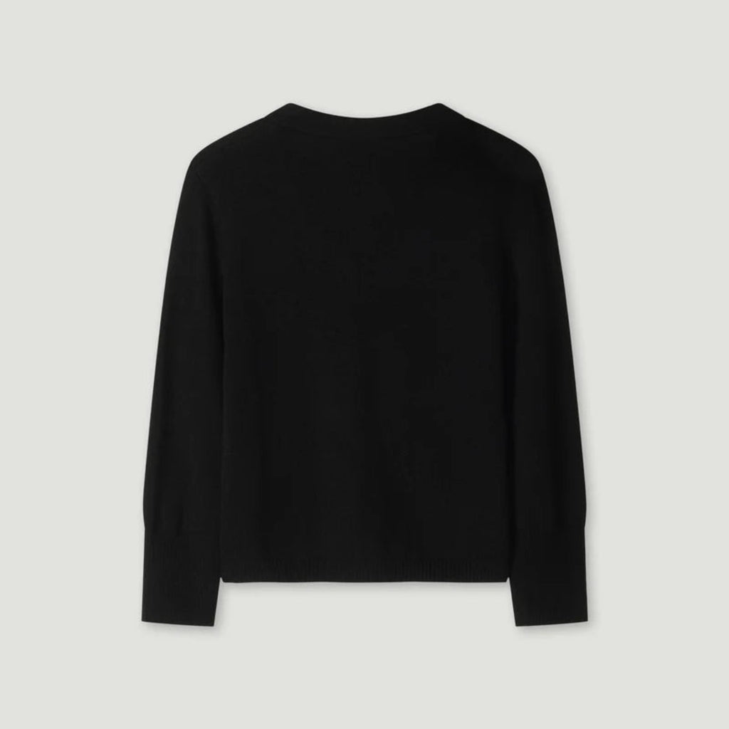 The Oliva Cardigan is a timeless piece made from soft cashmere. Designed with a deep V-neckline and two front pockets, it offers an easy, relaxed feel. In classic black, it brings quiet sophistication and effortless versatility to any wardrobe, a piece to wear season after season.