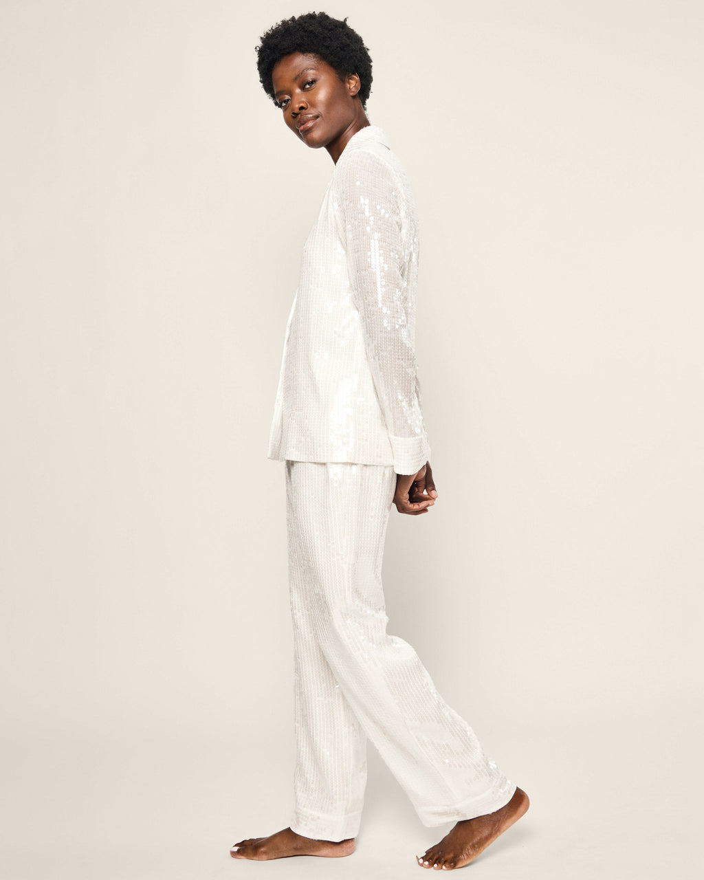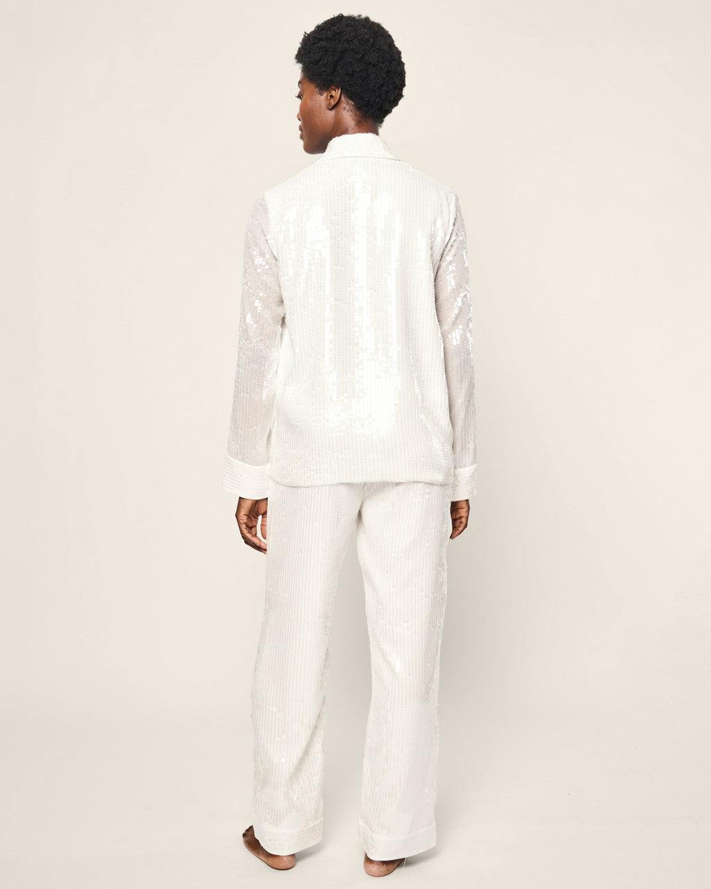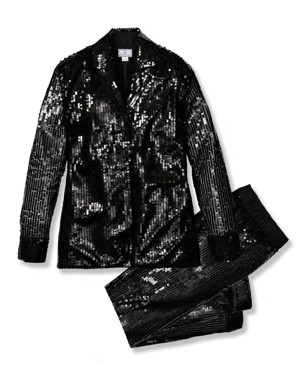 Play with contrasts in this striking new set, combining classic twill that sparkles with white sequins.