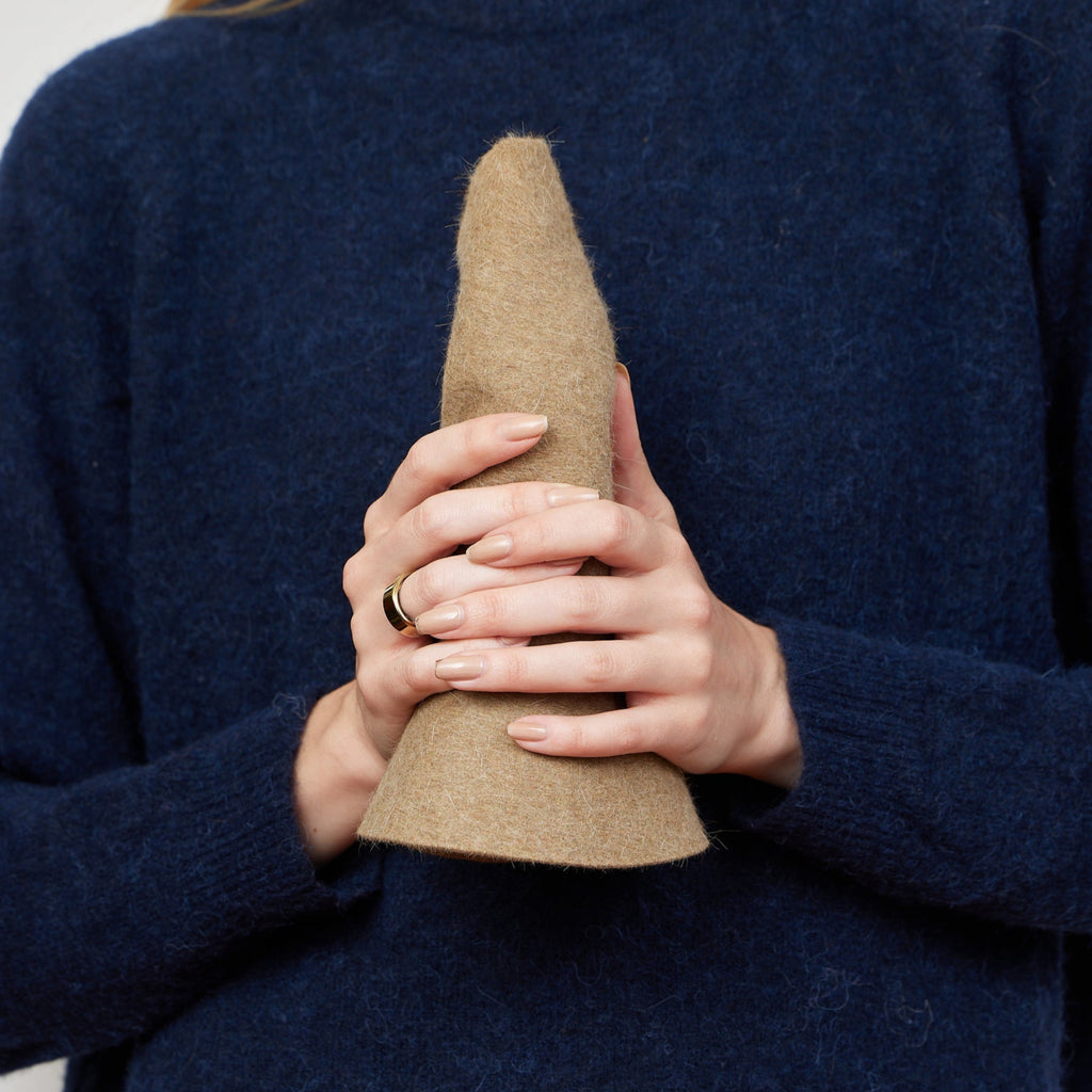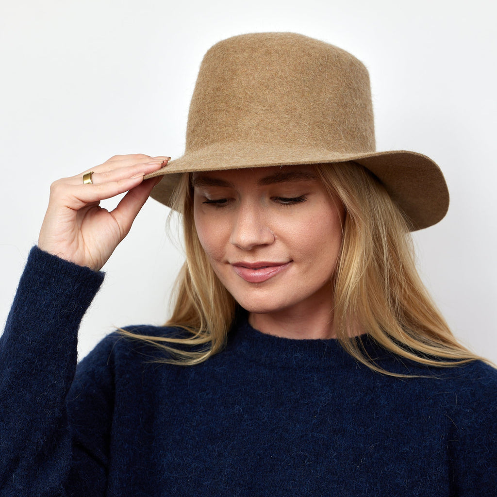 We love this packable hat! Rolls up for easy travel and made from our luxe velour fabric. Our Anna bucket is hand blocked by local workers in our Stamford, CT factory. We are proud of our made in USA products.