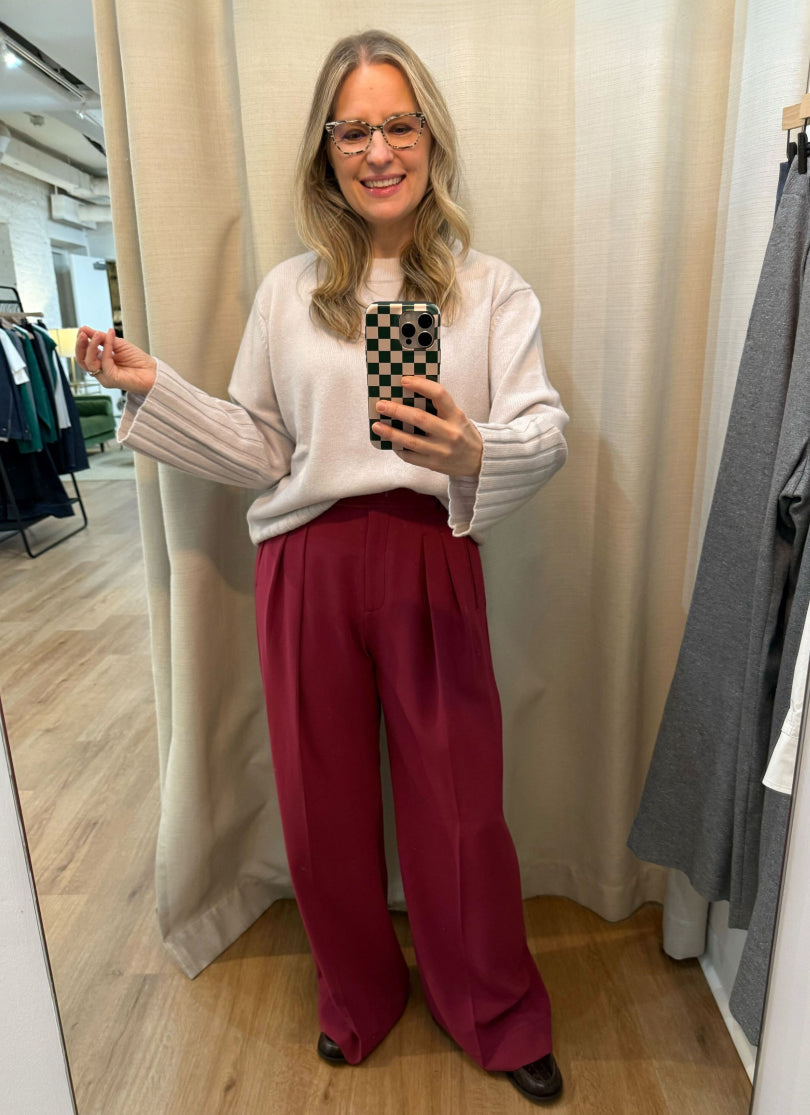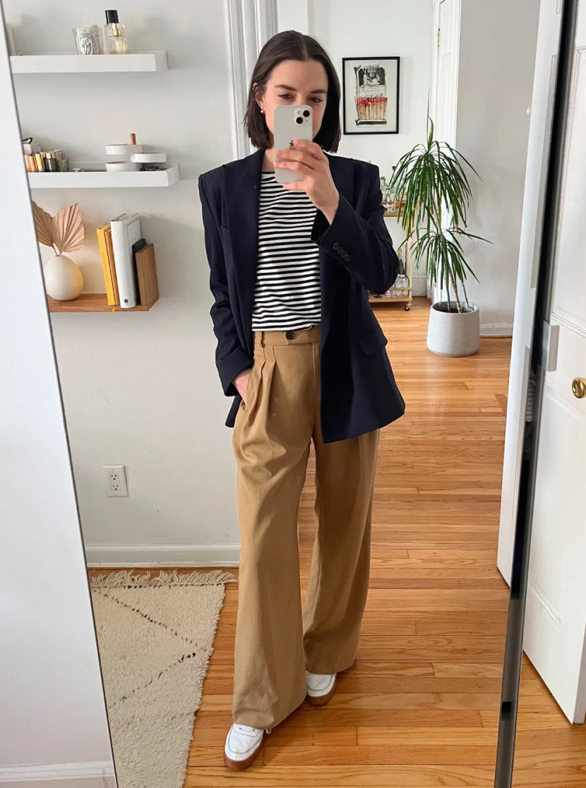 Our founder and CEO, Sarah, wears the Bia trouser at least once a week. Easy enough for life with her three kids, polished enough for the office.