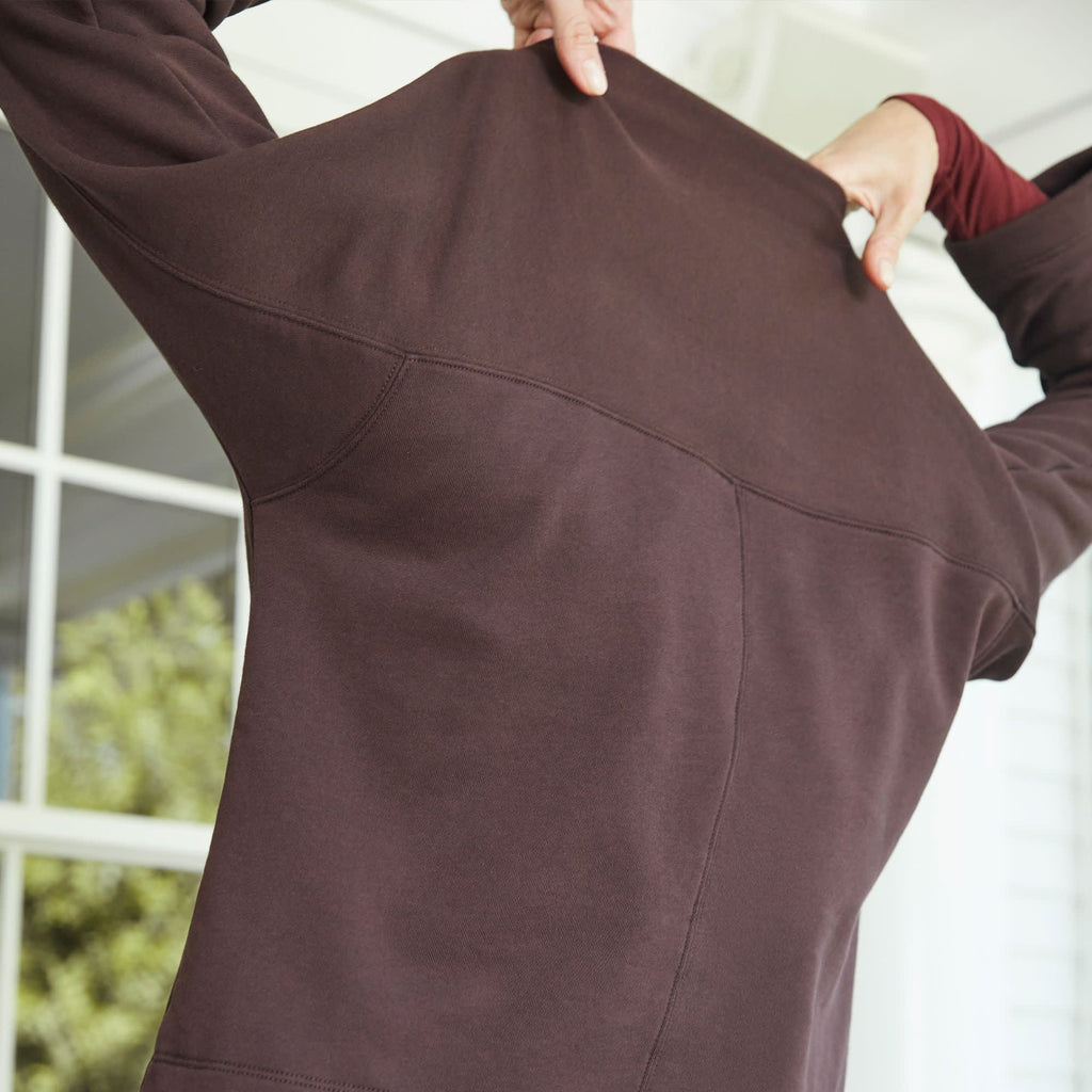 The Kristin pullover is made from a 100%-cotton French terry that’s incredibly soft, comfortable, and durable. It features a unique neckline and easy fit, and it can be worn as a top or a polished sweatshirt. A T-shaped seam in the back creates a more elevated look.