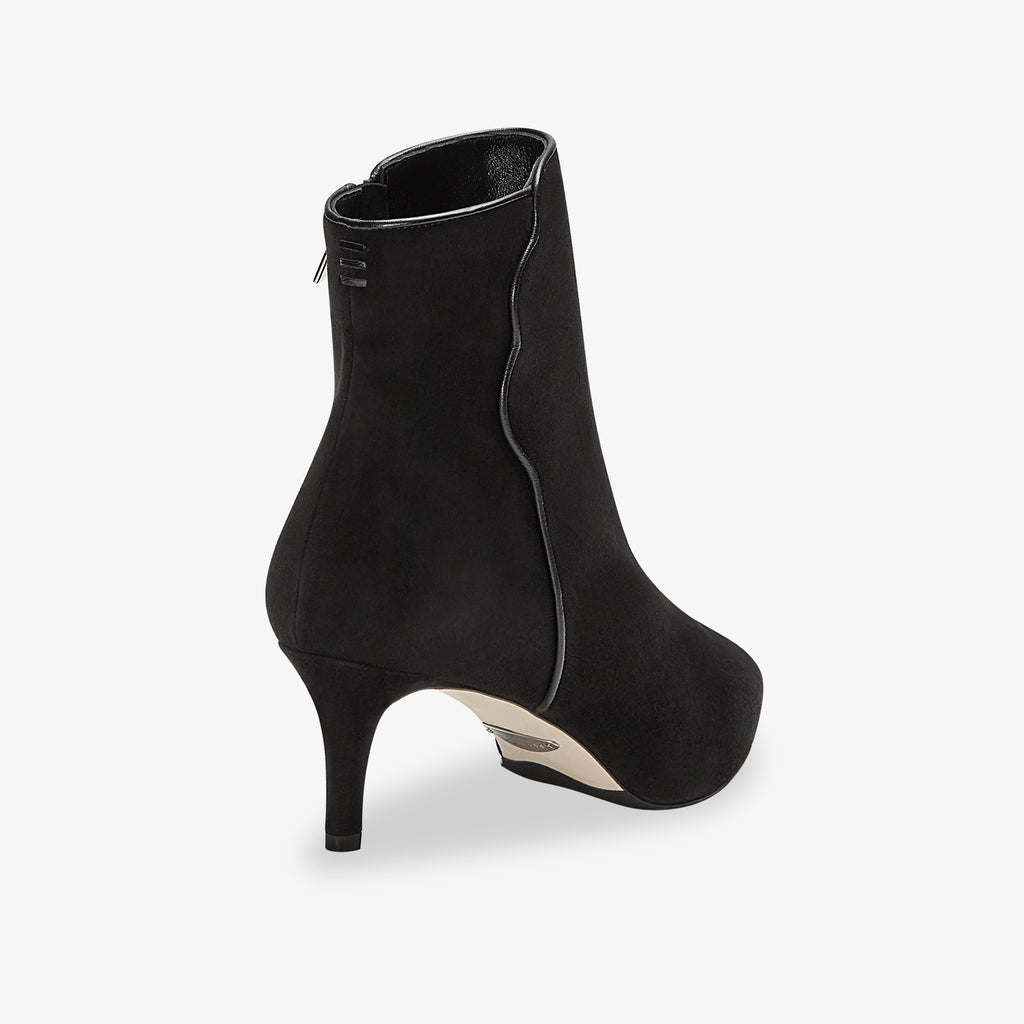 The 60mm stiletto bootie for special occasions, in soft black suede with a comfortable hidden platform.